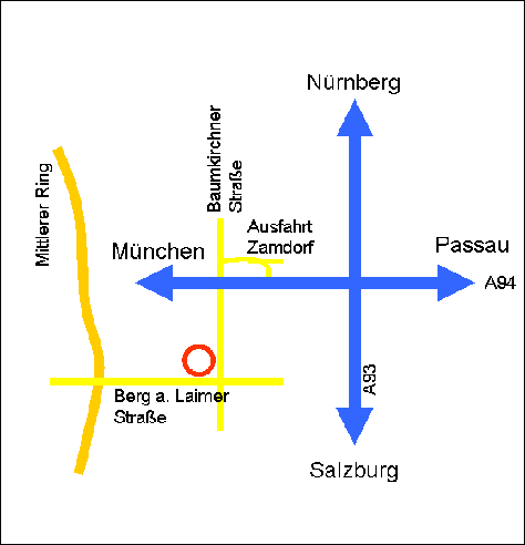 B) Wenn Sie vom Mittlerer Ring kommen:Verlassen Sie den Ring in Berg am Laim und Biegen Sie in die Berg am Laim Straße ein.